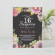 Invitación floral del cumpleaños de la sorpresa décimosexto para las mujeres. Acuarela floral, fondo rosado, negro de la pizarra. décimosexto décimo octavo 21ro trigésimo 40.o 50.o 60.o 70.o 80.o 90.o 100o. Para el arreglo para requisitos particulares adicional, haga clic por favor el "personalizar él" botón y utilice nuestra herramienta de diseño para modificar esta plantilla.