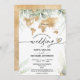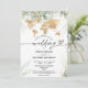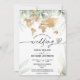 ¿Planeando una boda en un destino romántico? Invite a sus invitados con esta hermosa invitación con un mapa del mundo dorado sobre el fondo floral y su destino personalizado marcado con el corazón móvil.