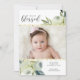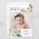 Una invitación hermosa del nacimiento que ofrece dos fotos destacadas por un diseño floral de la acuarela pintada a mano, falsos acentos del purpurina del oro y "sintiendo" el texto bendecido. Personalizar añadiendo el stats del nacimiento, nombre, etc. de moda y moda con todo simples y obra clásica - la invitación perfecta para su bebé precioso.