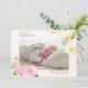 Estos 2 elegantes y elegantes echaron a un lado las características de la tarjeta de la invitación del nacimiento de la foto cuatro (4) fotos (frente y parte posterior) de su niña recién nacida, texto de encargo que pueden ser personalizados, arte de la acuarela de la camelia rosada y flores blancas de la magnolia. Modifique este producto de la plantilla para requisitos particulares añadiendo el nombre de su bebé recién nacido, el expediente del nacimiento, y los nombres de los padres.