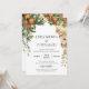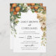 Bonito, elegante, moderna y bohemia invitan a su ocasión especial. Borde foliage de color de agua en hojas oscuras y verdes, con fruta naranja de la naturaleza y flores en miniatura enmarcan la parte superior de los detalles de la celebración boda. Sus nombres aparecen en letra moderna en la parte superior, y tarjeta inversa para revelar un patrón de follaje verde en la parte posterior. Personalizar los detalles de su boda, fecha, lugar y más en la parte delantera.