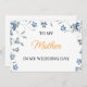Celebra el vínculo especial entre madre e hija con nuestra tarjeta Floral Elegante "A mi madre en el día de mi boda". Adornada con delicadas flores de barril, esta tarjeta transmite hermosamente sentimientos sentidos en tu gran día. El impresionante diseño floral añade un toque de sofisticación, convirtiéndolo en un querido placer para tu madre para el tesoro. en la parte de atrás, tienes mucho espacio para escribir tu propio mensaje amoroso, asegurando que tus palabras reflejen el profundo aprecio y amor que tienes por ella. Esta tarjeta no es solamente un saludo, sino una manera significativa de honrar su apoyo y guía a lo largo de su vida.