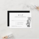 Tarjeta RSVP de Boda Vintage Floral Elegante. Plantilla de tarjeta de respuesta floral en blanco y negro