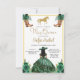 Invitación Floral Emerald Green Gold Boots Caballo Quinceaner