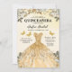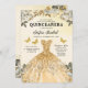 Invitación Floral Gold QR Código Princesa Quinceanera