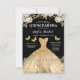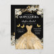 Invitación Floral Gold QR Código Princesa Quinceanera