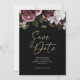 Presenta a tus invitados la fecha de tu boda con esta floral, salva la invitación de fecha. El diseño presenta un romántico ilustracion floral sobre un fondo oscuro que crea una sensación de elegancia gótica y oscura. Perfecto para una boda de otoño o de invierno, este monótono salve nuestra fecha marcará el tono para su celebración inolvidable.