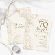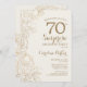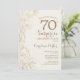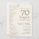 Floral Marfil Cream & Gold Surprise Invitación a la Fiesta de Cumpleaños 70. Diseño moderno minimalista con acentos botánicos y tipo de letra de escritura tipográfica. Sencilla tarjeta de invitación floral perfecta para una elegante celebración de cumpleaños sorpresa femenina. Se puede personalizar a cualquier edad.