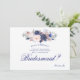 Flores de acuarela azul marino y azul cielo "¿Serás mi dama de honor?"