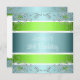 Todos los eventos, celebraciones, Invitaciones y invitaciones a la fiesta de cumpleaños. Apropiado para todos los cumpleaños y eventos de la edad. Rsvp está disponible bajo petición en estilo similar. Hermosos adornos estilizados de cinta metálica azul y verde y las joyas Metalizado florales plateadas embellecen blanco.