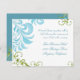 PALETA DE COLORES: azul aqua, azul cielo medio, verde menta, verde esmeralda. COLECCIÓN DE DISEÑO: Este conjunto de invitaciones de boda está creado a partir de ilustraciones originales de acuarela de Audrey Jeanne Roberts. Patrones delicados y modernos de hojas en espiral y volutas en azul y verde bailan alrededor de la invitación con un par de libélulas bellamente detalladas. Hay una fuente elegante de caligrafía a mano Ampersand con el nombre de la novia y el novio y la fecha de la boda en la parte frontal. El reverso tiene los remolinos pintados a mano que florecen en el texto de su invitación. Esta es una invitación de boda de dos lados.