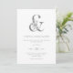 Estas invitaciones de boda modernas y minimalistas cuentan con una ampersa gris con flores elegantes y todo el texto de la invitación a la boda en un texto coincidente, sobre un fondo blanco limpio.
