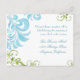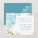 PALETA DE COLORES: azul aqua, azul cielo medio, verde menta, verde esmeralda. COLECCIÓN DE DISEÑO: Este conjunto de invitaciones de boda está creado a partir de ilustraciones originales de acuarela de Audrey Jeanne Roberts. Patrones delicados y modernos de hojas en espiral y volutas en azul y verde bailan alrededor de la invitación con un par de libélulas bellamente detalladas. Hay una fuente elegante de caligrafía a mano Ampersand con el nombre de la novia y el novio y la fecha de la boda en la parte frontal. La parte posterior tiene los remolinos pintados a mano que florecen en el texto de su invitación. Esta es una invitación de boda de dos caras.