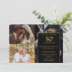 Esta elegante invitación de aniversario de bodas de 50 años con flores negras y doradas se puede personalizar con su información en tipografía moderna y dos fotos especiales. Diseñado por Thisisnotme©