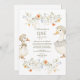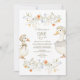 Invitar a los seres queridos a una fantástica fiesta de cumpleaños con este diseño suave e inspirado en el libro de cuentos. Con dos adorables gansos tontos vestidos con encantadores trajes vintage, rodeados de delicados naranjas y flores silvestres azules, esta invitación mezcla un ambiente nostálgico dulce con una paleta neutra moderna. Perfecto para una celebración de primavera o de natación con temática natural, con un toque de coqueta y encanto rústico.