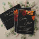 Colorful painted flowers and bride and groom names in an elegant classic calligraphic script on a black background wedding invitation.
