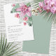 Modern Palm Leaves Orchid Floral Tropical Wedding Invitation. With pink and green botanical accents contrasted by black and white lettering. A tropical design that embraces the tranquil beauty of nature mixed with a playful edge that is sure to help you have fun. Calming green tropical banana leaves or palm leaves, alongside soothing purple-pink orchid flowers. Serif fonts enhanced by a modern handwritten or script typography font, this enchanting print radiates charm and sophistication. This versatile design brings a sense of tropical paradise to any setting or special occasion, making it perfect for a destination wedding, or just when you want to add a tropical flare.