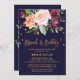 Este otoño floral con brunch de fondo de corona y una invitación burbujeante es perfecto para una ducha nupcial de otoño. El diseño presenta un impresionante ramo de flores de color burdeos, melocotón naranja y marsala con tipografía de Relieve metalizado de oro y confeti. La parte posterior cuenta con una hermosa flor que se puede personalizar con el nombre de la futura novia. Nota: Este diseño no tiene Relieve metalizado oro real. Es un gráfico de alta calidad hecho para parecer un Relieve metalizado dorado.
