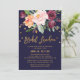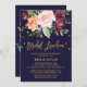 Esta floral de otoño con corona de flores que da soporte a la tarjeta de invitación al almuerzo nupcial es perfecta para una ducha nupcial de otoño. El diseño presenta un impresionante ramo de flores de color burdeos, melocotón naranja y marsala con tipografía de Relieve metalizado de oro y confeti. La parte posterior cuenta con una hermosa flor que se puede personalizar con el nombre de la futura novia. Nota: Este diseño no tiene Relieve metalizado oro real. Es un gráfico de alta calidad hecho para parecer un Relieve metalizado dorado.
