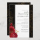 Invitaciones para el 25º aniversario de bodas con flores góticas rojas, salpicaduras de rojo y negro, flores doradas. Hojas florales doradas falsas. La fuente script destaca con una fuente de nombre serif fácil de leer. Fácil de ajustar para tus propias necesidades de boda.