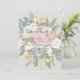 Esta invitación floral a la boda es perfecta para un boda moderno. El diseño es elegante y romántico, con hermosas flores de acrílico pintadas en rosa y blanco, con brotes de color violeta, azul, naranja y amarillo, adornados con tu texto.