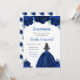 Esta invitación de Quinceanera cuenta con flores florales color azul marino purpurina y una hermosa princesa con pelo castaño y un vestido elegante. Es perfecto para una fiesta de cumpleaños de Quinceanera.