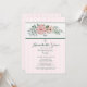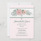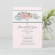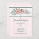 Una bonita invitación a rayas rosas y blancas con una media luna de flores y follaje en tonos rosas y grises. Perfecto para cualquier sacramento religioso. La cruz destacada puede ser eliminada haciendo de esta una invitación versátil.