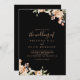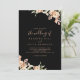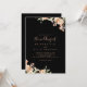 Esta floral real negra y formal, el boda de la invitación, es perfecto para un boda rústico. El diseño se compone de flores acuáticas elegantes, rosas y blancas con hojas de color verde esmeralda.