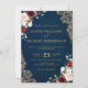 Elegante y moderna invitación de boda romántica con flores de acuarela, cinturón de vientre presenta un ramo de rosas de acuarela de color burdeos / marsala, rosa sonrojado, púrpura, melocotón con follaje dorado / dorado a juego sobre fondo azul marino con esquinas de encaje. Perfecto para una boda de otoño / mediados de verano. Por favor, busque más diseños y variaciones coincidentes en mi tienda "blissweddingpaperie". Y no dude en ponerse en contacto conmigo para una mayor personalización o artículos coincidentes.