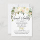 Sencillamente elegante diseño de ramo rústico floral en color agua pintada a mano (acuarela) verde, rosa rubor, beige, champán, vainilla, melocotón, rosas de flores blancas / peonía de fondo blanco y letras negras. Delicada ducha de boda de novia / brunch & burbujeante invitaciones para ese tema de primavera o verano. Tarjetas exteriores perfectas. La parte trasera de la tarjeta tiene el nombre de la futura señora.