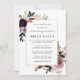 Invitación Floral rosa púrpura de plumas 80 cumpleaños