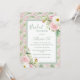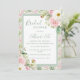Flores rosa y blanca bonito adornando 2 esquinas de esta encantadora ducha de novias invitan. Una invitación boda perfecta para novias en cualquier temporada. Las flores acuáticas son simplemente hermosas. Un fondo rosa y sabio vintage es encantador y se añade a este diseño.