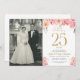 Elegante Invitación de Aniversario número 25 con Floral Rosa y Dorado con Foto | Celebrando 25 Años