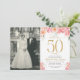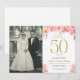 Elegante Invitación de Aniversario número 50 con Floral Rosa y Dorado con Foto | Celebrando 50 Años