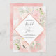 Invite a sus huéspedes a su boda con este magnífico se ruborizan invitación rosada que ofrece tipografía mano-indicada con letras floral y hermosa magnífica.