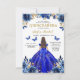 Invitación Floral Royal Blue QR Código Princesa Quinceanera