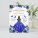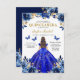 Celebra tu día especial con la invitación de la floral princesa de la mariposa azul azul Quinceañera. Con un impresionante telón de fondo azul real adornado con delicados acentos florales y mariposas encantadoras, este elegante diseño captura la belleza y la gracia de una quinceañera. Perfecto para una celebración de temática princesa, la invitación combina el encanto atemporal con un toque moderno. Invite a sus invitados a unirse a las festividades mágicas, marcando este hito inolvidable con una invitación que refleja la elegancia y sofisticación de su celebración de quinceañera.