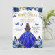 Celebra tu día especial con la invitación de la floral princesa de la mariposa azul azul Quinceañera. Con un impresionante telón de fondo azul real adornado con delicados acentos florales y mariposas encantadoras, este elegante diseño captura la belleza y la gracia de una quinceañera. Perfecto para una celebración de temática princesa, la invitación combina el encanto atemporal con un toque moderno. Invite a sus invitados a unirse a las festividades mágicas, marcando este hito inolvidable con una invitación que refleja la elegancia y sofisticación de su celebración de quinceañera.