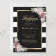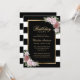 Elegante invitación de cumpleaños florido a rayas blancas y negras, inspirada en rosas rosas rosas rosas rosas rubias. Invitación de cumpleaños floral de Rubor. Invitaciones de cumpleaños en blanco y negro. Invitaciones de cumpleaños en negro y oro. Personaliza fácilmente cualquier cumpleaños.