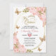 Invitación Floral Rubor Pink Gold Tiara Butterfly Quinceañera