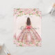 Floral Rubor Pink Princess Gown Dress Gold Purpurina Sparkle Invitación Quinceanera 15 cumpleaños
