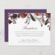 Un conjunto único de invitaciones florales de ciruelas violetas, especialmente adaptadas a tu futuro fiesta de recepción de bodas. Estas invitaciones incluyen un exuberante colgante de flores moradas y plumas. Debajo de esto hay un lugar para sus detalles únicos. En el reverso hay una rica púrpura de ciruela para complementar el frente. Este artículo es una sola pieza de la colección de bodas Wild Royal Bloom. Visite la colección o el almacén de colores de la jungla para ver más elementos coincidentes.