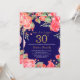 Invitación de cumpleaños número 30 para mujeres de la Red Floral Surprise. Flor Floral Botánica de acuarela. Brillantina dorada. Flores Florales De Peonies Rosados. Cumpleaños de adultos. Fondo azul marino. Para una mayor personalización, haga clic en el botón "Personalizar" y utilice nuestra herramienta de diseño para modificar esta plantilla.