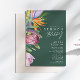 Esta floral tropical colorida | el brunch verde y la vibrante invención son perfectos para su moderno destino boho, la ducha verde, púrpura y marica de novia. El diseño cuenta con un elegante ramo de flores y vegetación clásica de color agua de la playa, que incluye eucalipto verde salado, protea roja y malva, hibiscos rosas de color rosa oscuro, pájaro paradisíaco y naranja, y hojas de palmera verde oscuro. El diseño es ideal para un boda de viajes sencillo, creativo y único para primavera, verano, otoño o invierno. Encontrará otro papel de boda que coincida o coordine el resto de la colección.