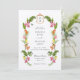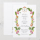 Hermosa invitación de boda de acuarela pintada a mano con tema tropical enmarcada por un delicado arreglo de flores tropicales coloridas, follaje y pájaros. Este diseño también presenta un simple monograma de iniciales apiladas dentro de un escudo, lo que le da un aspecto muy personalizado y pintado a mano a un precio económico.