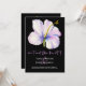 Esta hermosa invitación de anuncio de boda y recepción de destino de playa floral tropical presenta las palabras "nos casamos" con elegante hibisco blanco de acuarela con toques de lavanda y púrpura sobre un fondo negro y una elegante letra manuscrita púrpura lavanda de moda. Asegúrese de incluir una respuesta con este anuncio para recibir la respuesta de sus invitados para aquellos que no tienen Internet y no pueden responder a través de su sitio web de boda. Fácil de personalizar con la información de su recepción de boda. Esto es perfecto para la recepción de boda de playa o tropical o para la pareja que se casó en un destino de boda tropical.