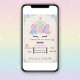 Featuring a soft pastel rainbow unicorn, floral crown, butterflies, and glitter accents, this invitation is perfect for a girls unicorn-themed birthday celebration.