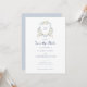 Floral White Dusty Blue Crest Save the Date Wedding Invitation. Traditional Wedding Invitation. White Flowers Greenery Wedding Monogram Crest Save the Date Card