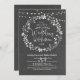 Una invitación a una boda tan monótona y femenina, rústica, con una corona floral romántica de ramas, flores dibujadas a mano y hojas. El pizarrón con luces de cuerda invita a las flores dibujadas a mano, perfecto para su temática rústica vintage o moderna de boda.
