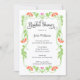 © 2015 Socialite Designs. Una elegante hoja, flores y remolinos bordean con una hermosa combinación de corales y colores verdes. El diseño es perfecto para cualquier celebración o reunión. El estilo de fuente, el texto y el tipo de papel se pueden cambiar.